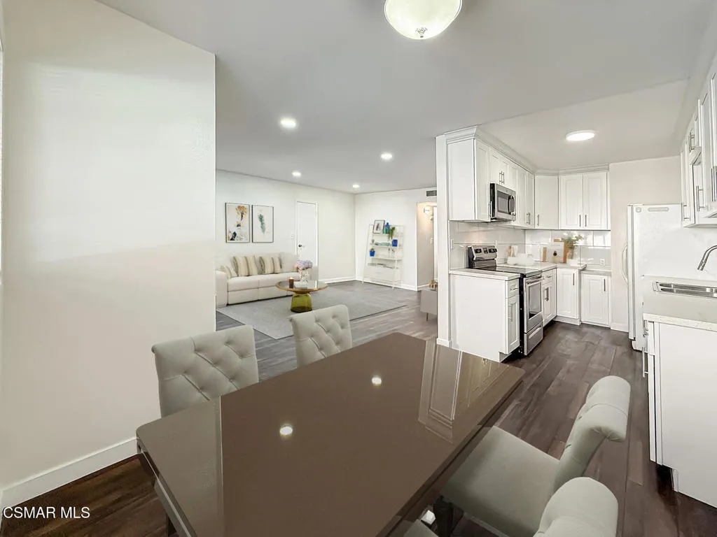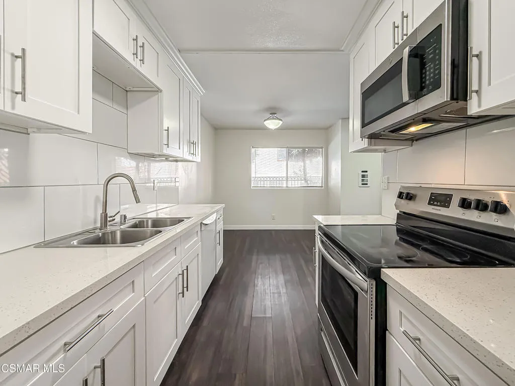 Recently updated and spacious, this ground-floor 2-bedroom, 2-bath condo is located in the desirable Newcastle Manor Community in the heart of Encino. Smooth ceilings, recessed lights, stylish laminate flooring and newer paint extend throughout the condo. The bright and airy living room flows seamlessly into the dining area and modern kitchen, which features quartz countertops and generous cabinet space. Stylish laminate flooring and newer paint extend throughout the unit. The large primary suite includes a walk-in closet and a renovated en-suite bath. The secondary bedroom offers a mirrored double closet and easy access to the full hall bathroom. This unit also includes two designated tandem parking spaces in the secure, gated garage--a valuable convenience in the area. Newcastle Manor is a well-maintained, controlled-access community with amenities including a sparkling pool and spa, fitness center, BBQ areas with seating, community laundry, and secure gated entrance and parking. HOA dues conveniently cover water, sewer, and trash services. Ideally located just off Ventura Boulevard, you're a short distance to popular restaurants, boutique shopping, and coffee shops as well as sought-after schools. Some photos have been digitally staged.