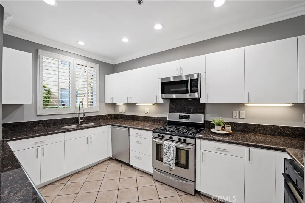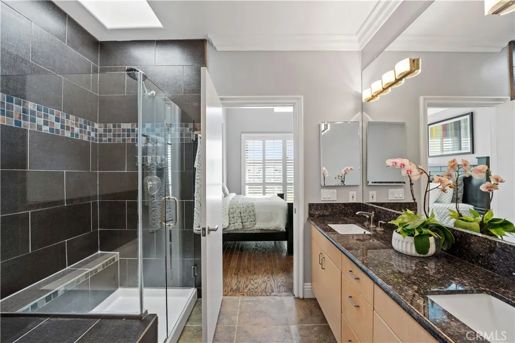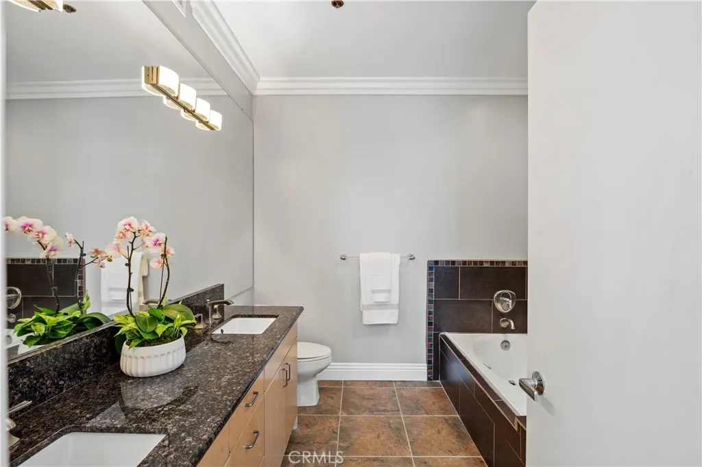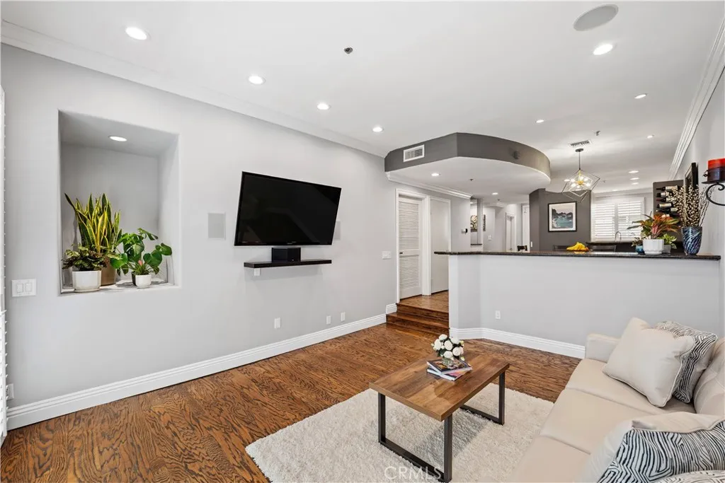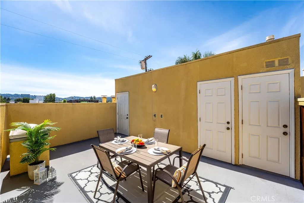 Fabulous townhome with roof-top patio and massive bonus room in a quaint 17-unit complex in Sherman Oaks. As you step inside this 2 bed/2 bath townhome with 1,622 sq ft, you are greeted by a gorgeous kitchen featuring granite counters and stainless-steel appliances. Adjacent to the kitchen is the dining room and a spacious step-down living room with balcony. The first floor also includes wood floors, recessed lighting and an updated powder room. The primary bedroom is large and very bright with high ceilings, custom closet, plantation shutters, an additional balcony and en-suite bathroom with granite counters, dual vanities, jacuzzi tub, an oversized frameless glass shower and skylight. The second bedroom is next to another full bathroom that has granite counters and a newly tiled shower/tub enclosure. The rooftop patio is a perfect place to relax while sipping on your favorite cocktail and enjoying our Southern California sunsets. This townhome also includes an approximately 300 sq ft bonus room downstairs, which is the ideal spot for an entertainment room or separate office space. The bonus room also has an area for the washer/dryer, cabinets and direct access to side by side parking in the garage. Other updates include newer HVAC and new carpet. Located a short distance from Ventura Blvd, shopping, local restaurants and coffees shops.