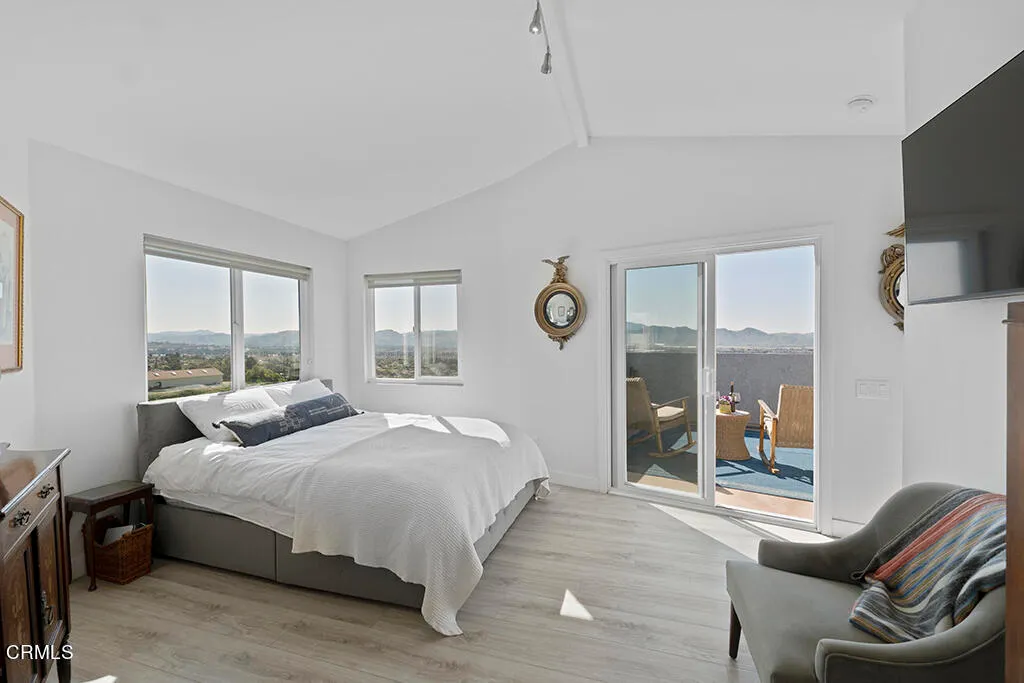 Set on a .89-acre hilltop overlooking the entire Camarillo Valley, this 2,200 sq ft custom three-story home captures the beauty and quiet hillside lifestyle Camarillo is known for. Sweeping 360-degree views of mountains, rolling hills, and ocean glimmers surround the property and create an atmosphere of total peace and privacy.The middle floor is the main living level, featuring an open-plan kitchen and dining area that open directly to a wraparound balcony--perfect for outdoor meals, morning coffee, and enjoying the breeze. A cozy TV/seating area, a separate living room, a bathroom, and a two-car garage with direct access to the middle-deck patio with more dramatic mountain views.The top-floor primary suite feels like a private retreat. Wake up to ocean views, step outside onto your own balcony, and unwind in an en-suite bathroom with a soaking tub framed by dramatic mountain scenery.The lower level includes three additional bedrooms, including one with direct backyard access, plus a full bathroom with a bathtub, a laundry area, and a side-passage door for easy outdoor entry--ideal for guests, family, office use, or multi-generational living.The backyard is a true hillside sanctuary with multiple seating areas designed to take in the panoramic views. Whether you're hosting friends, relaxing at sunset, or enjoying a quiet morning, the setting is peaceful, private, and unlike anything else in Camarillo.Perfect for remote professionals, creatives, LA weekend buyers, or anyone seeking a serene hillside home just an hour from Los Angeles and minutes from the coastal drive towards Malibu.