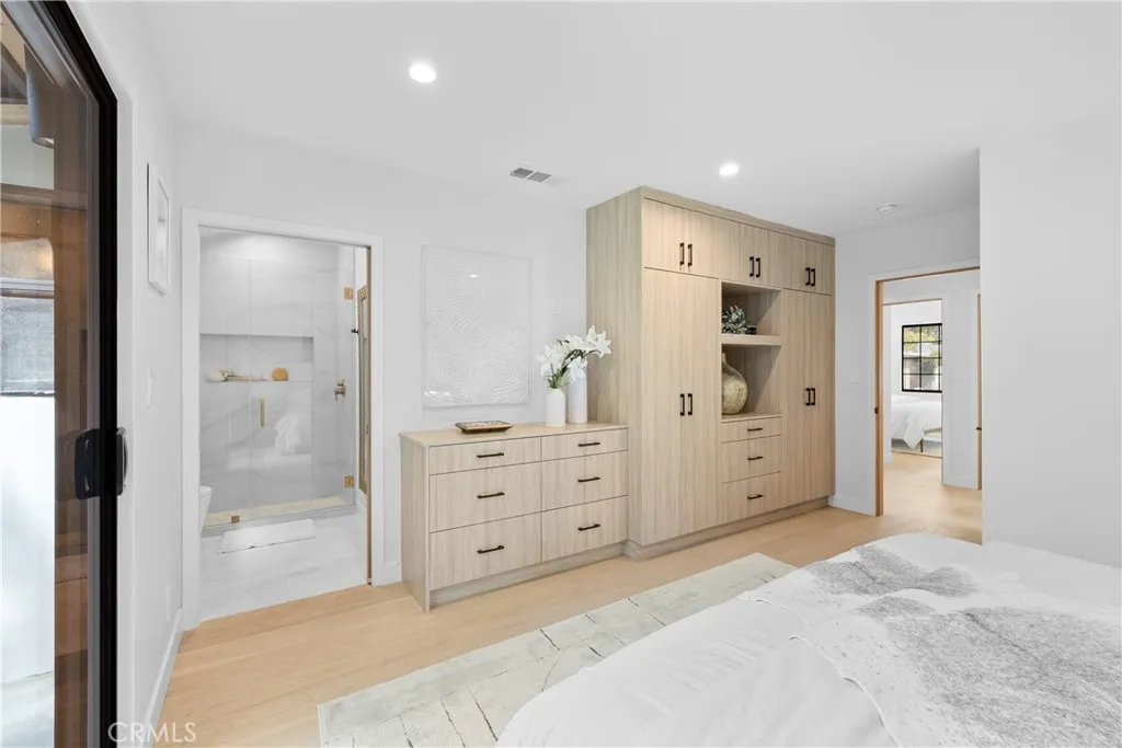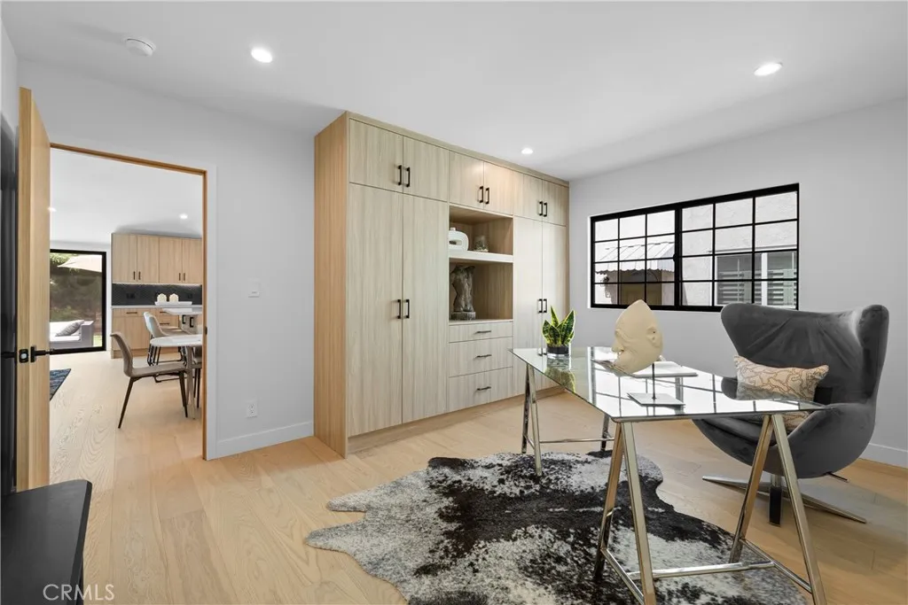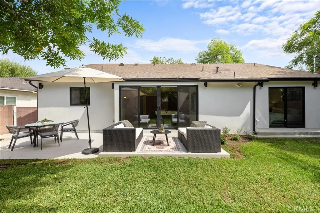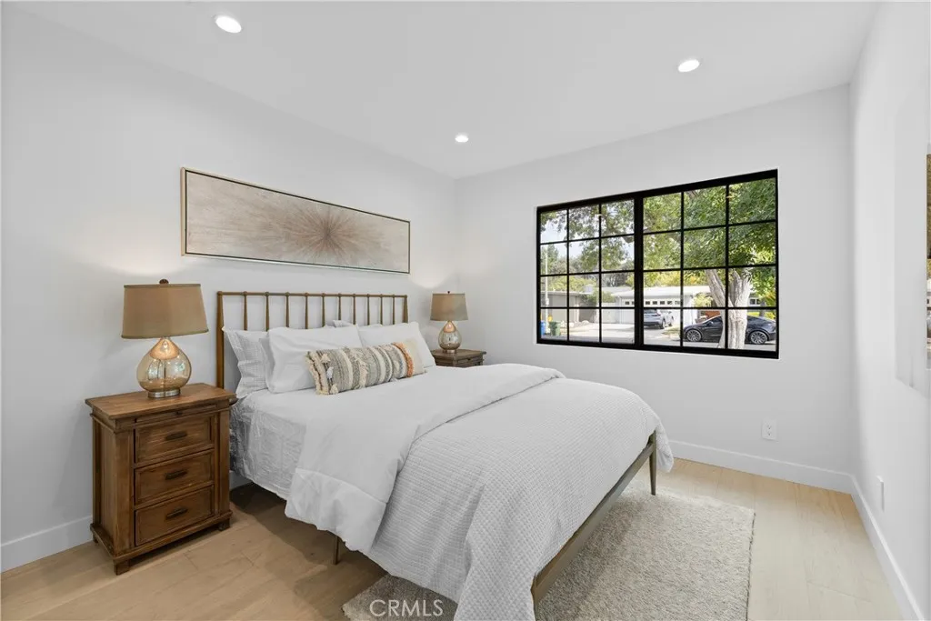 Nestled in highly sought after Encino Village, this home has been completely remodeled and offers 4 bedrooms and 3 bathrooms across nearly 1,750 sq. ft. of living space. Set on a quiet, tree-lined street where pride of ownership shines, it boasts inviting curb appeal and a thoughtfully designed open concept floor plan, perfect for entertaining and everyday living. The light-filled living room and kitchen create a warm, welcoming ambiance, enhanced by premium wood floors and recessed lighting. The chef's kitchen features new quartz countertops, a ceramic tile backsplash, custom cabinets, and brand-new stainless steel appliances and center island with a Breakfast/Buffet Bar. The spacious primary suite includes a stylish en suite bathroom and new slider access to a peaceful back yard while the additional bedrooms share a beautifully renovated bathroom. The 4th bedroom is separated and features its own bathroom, perfect for an office or in-laws. Green and Private Yard features a patio, lawn and mature foliage. An attached 2-car garage with opener offers excellent potential for conversion into a private guest suite, home office, or creative space. Additional updates include dual-pane windows, central air/heat, copper plumbing, modern fixtures. Walk to Park for Playground, Soccer, Baseball, Jogging, and Community Center. Take the Bike Paths to Scenic Lake Balboa. Just minutes to 101 and 405 Freeways, Shopping and Restaurants. Award Winning Encino Elementary!
