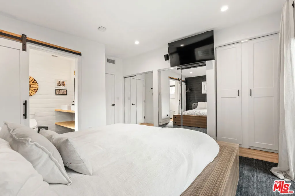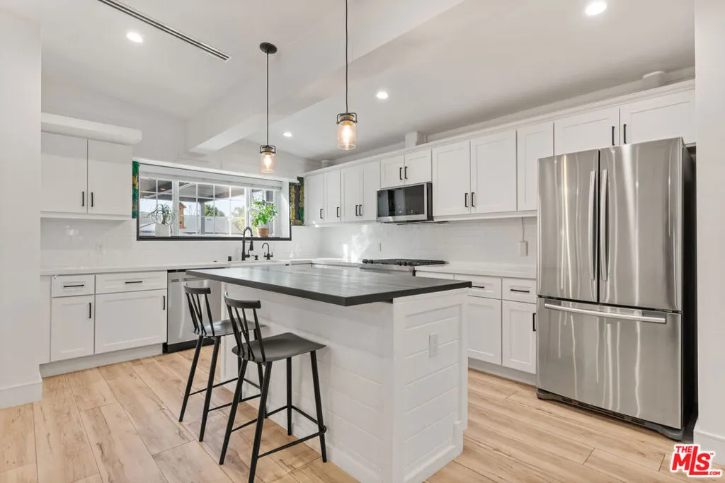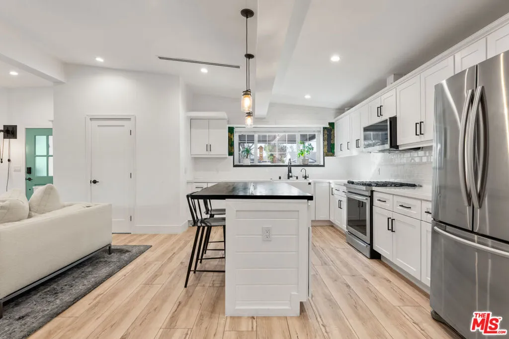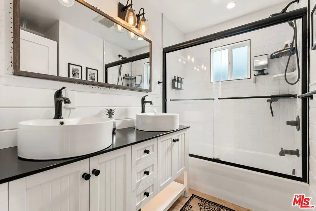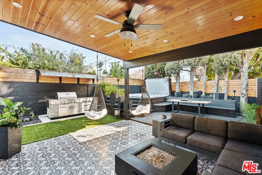 This beautifully updated 3-bedroom, 2.5-bath home exemplifies true pride of ownership, featuring thoughtful, owner-designed upgrades that harmoniously blend modern style with everyday comfort in one of Encino's most desirable neighborhoods. The fully renovated interior boasts soaring vaulted ceilings, stylish new flooring, and brand-new systems, including an updated 240-volt electrical panel, recessed lighting, and a new HVAC system with a NEST thermostat. The open-concept kitchen is a chef's dream, featuring a large island, quartz countertops, soft-close cabinetry, a farmhouse sink, and high-end stainless-steel appliances, including a Jenn-Air stove. Adjacent to the kitchen, a dining room with a newly installed custom bar and a living room open to the backyard for seamless indoor-outdoor living. The primary suite offers a private retreat, with sliding doors that lead to a resort-style outdoor shower and a top-of-the-line Sundance spa--your own personal oasis for relaxation and luxury. Step outside into an entertainer's dream yard, complete with Ipe deck flooring, a covered patio featuring recessed lighting, a ceiling fan, a built-in BBQ, and elegant new tile--perfect for hosting gatherings or unwinding under the stars. The home also features a new roof redone in 2023, a Tesla charger, and a garage outfitted with ample custom storage to meet all your needs. Located near Lake Balboa Park, the Orange Line Metro, Sepulveda Basin Sports Complex, and an off-leash dog park, this home is also within walking distance of the award-winning Encino Charter Elementary School. With a resort-like backyard, every detail lovingly designed and upgraded, and top-of-the-line features throughout, this home is a rare gem ready to welcome you!