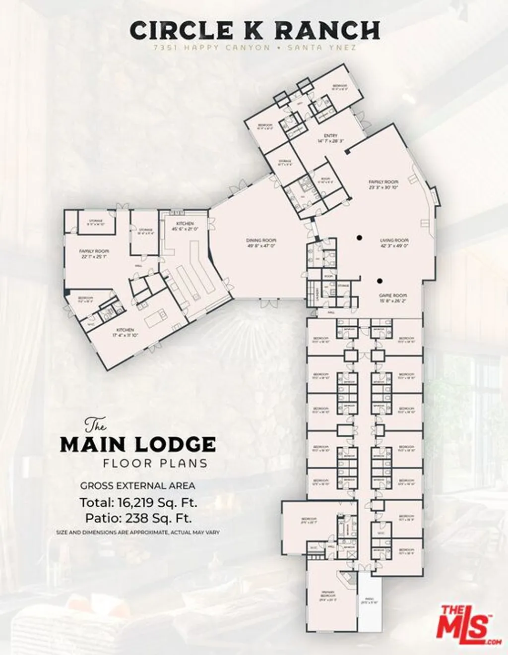 Welcome to the iconic Circle K Ranch, a stunning estate nestled in the heart of the Santa Ynez Valley - an area renowned for its world-class vineyards and equestrian culture. Spread across 554 breathtaking acres, this remarkable property is a fusion of history, luxury, and nature; making it ideal for a legacy ranch, corporate retreat or hospitality center. Originally known as the J & R Double Arch Ranch, this storied property was once home to McDonald's founders Ray and Joan Kroc, who transformed it into a think tank for the McDonald's Corporation. It was here, the Egg McMuffin was born, a testament to the innovative spirit that flourished within its gates. In 1990, the property was acquired by Gerald Kessler of Nature's Plus Vitamins, who renamed it Circle K Ranch and preserved its original charm and purpose. The property's heritage is captured in its masterfully designed structures. The 17,000-square-foot main lodge, designed by renowned architect Glenn Marchbanks Jr., stands as the centerpiece of the property, featuring 25 en-suite double occupancy lodging rooms, a grand 3,000-square-foot gathering room, commercial-grade kitchen and a dining room that accommodates 100 guests. The lodge's soaring ceilings, hand-carved woodwork and expansive views create an atmosphere of elegance and warmth. The adjacent 5,200-square-foot conference hall serves as an auditorium or theater, seating 62, perfect for corporate events, lectures, or film screenings. Situated atop a scenic hill, the Round House serves as the property's main home and commands stunning 360-degree views of Happy Canyon. Built in 1971 by Ray and Joan Kroc, the residence preserves its original period dcor and unique architectural style. The 5,200 square-foot home provides an intimate, one-of-a-kind living experience. Additional structures include four single-family residences, a duplex, manager's house, two bunkhouses equipped with 9 en-suite bedrooms, a gymnasium and more. In total, the ranch can accommodate up to 100 overnight guests. Water is abundant on the ranch, with numerous wells, two lakes and cisterns capable of storing over 100,000 gallons.The estate offers an abundance of amenities to cater to any lifestyle. The Founders Building serves as a library, conference hall and boasts 5 bedroom suites and ranch offices. For those seeking recreation, the estate includes a helicopter pad, two tennis courts, a resort-style pool, hiking trails and barbecue-picnic facilities. The barns, paddocks, trails and fenced corrals offer endless possibilities for equestrian pursuits and agricultural endeavors. The property is a working cattle ranch, but is also home to exotic animals including Watusi cattle, zebras, llamas and swans. Although exceptionally private, the property is conveniently located just 30 minutes from Santa Barbara and 10 minutes from the Santa Ynez Airport. Happy Canyon Road is a premium location, referred to by many as the "Montecito or Beverly Hills of the Santa Ynez Valley." Whether envisioned as a working ranch, corporate retreat, or personal estate, Circle K Ranch offers endless possibilities for its next chapter. Property consists of 7 APNs: 141-090-026, 141-020-012, 141-020-024, 141-020-025, 141-020-040, 141-090-025, 141-090-017.