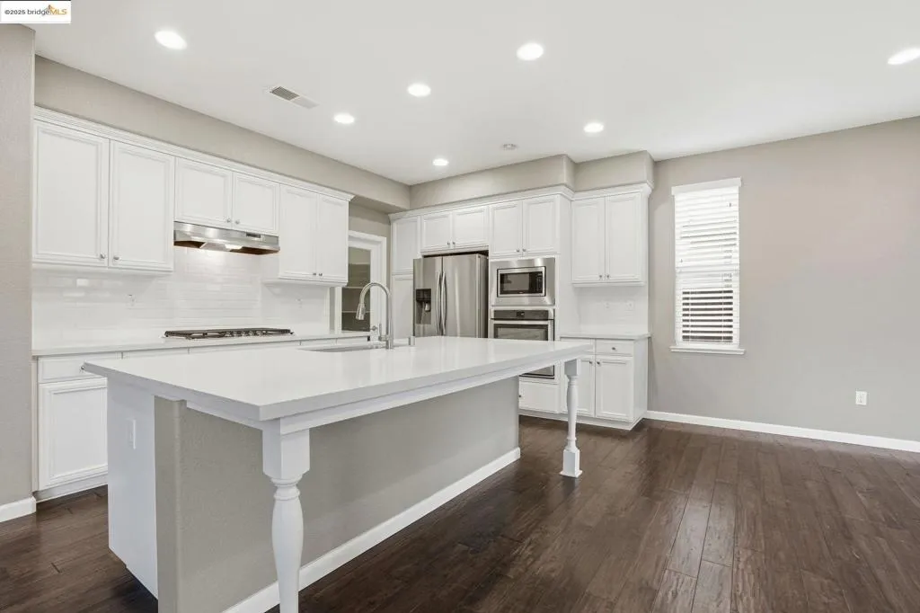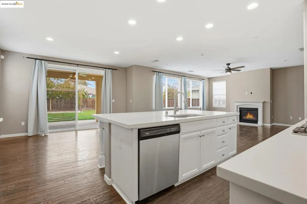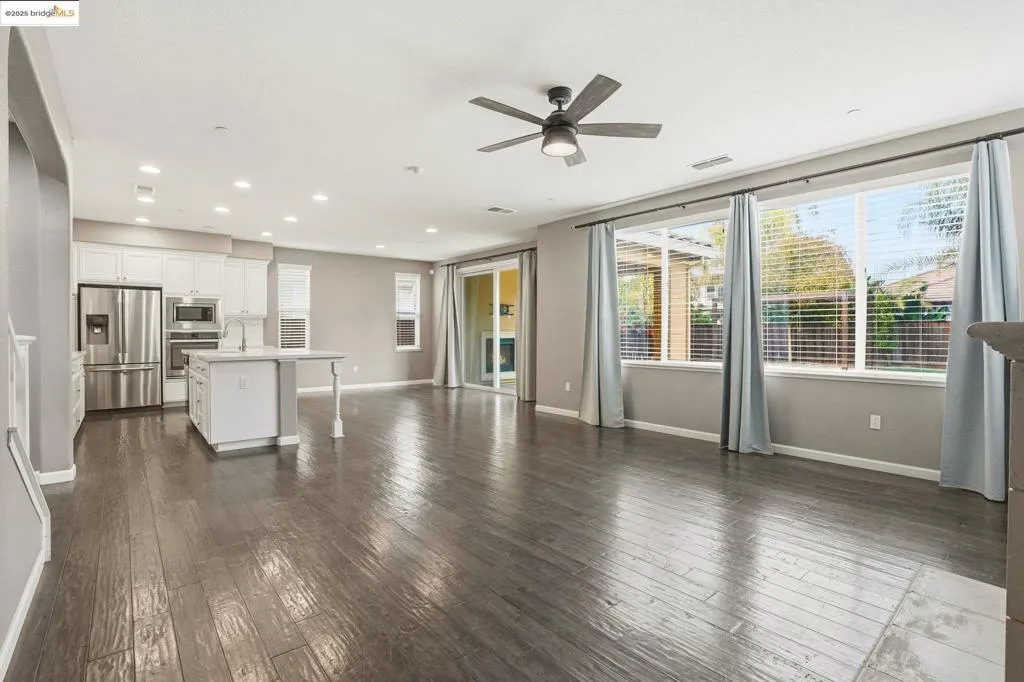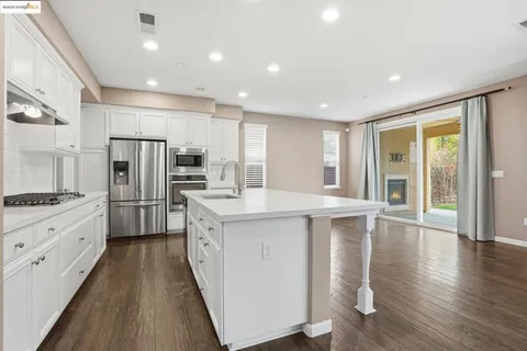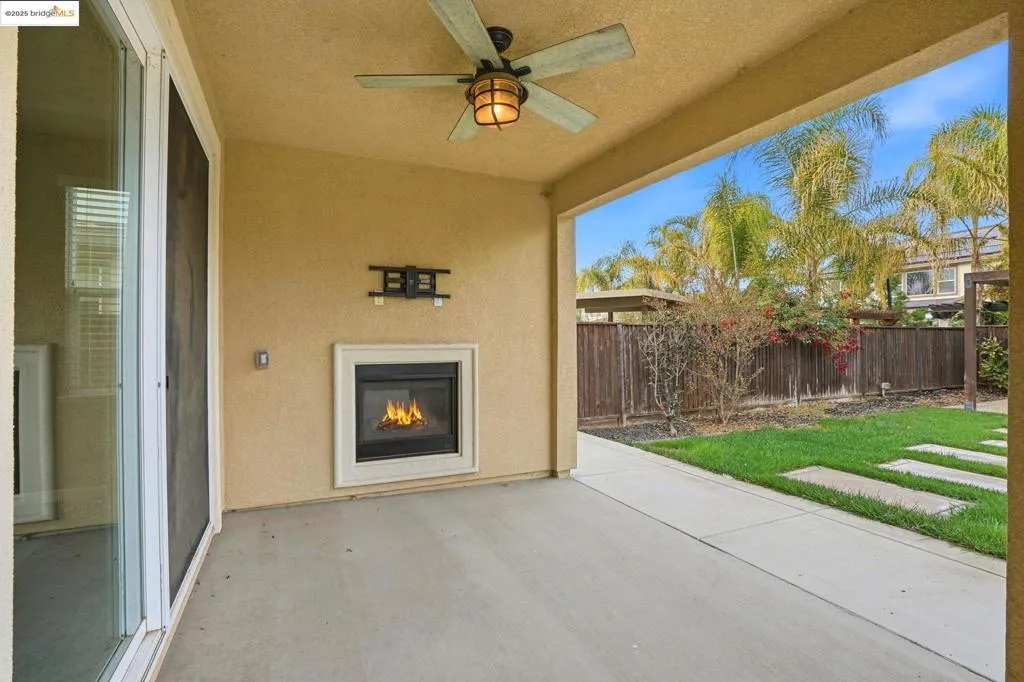 Welcome to 8047 Westport Circle, an exquisite 4-bedroom, 3-bathroom home nestled within the prestigious gated community of The Lakes in Discovery Bay. This 2,695 square foot home boasts an array of sophisticated features, including decorative touches, a covered front porch, and a tankless water heater. The versatile floor plan includes a downstairs bedroom and full bathroom, an upstairs loft that can serve as a fifth bedroom, and a family room with a gas fireplace. The California room, featuring a second gas fireplace, offers seamless indoor-outdoor living. The open concept kitchen family and dining area is a chef's dream. Equipped with quartz countertops, stainless steel appliances, and a generous walk in pantry. The home features distressed laminate floors, arched doorways, cathedral interior doors, and high ceilings. The spacious 3 car tandem garage accommodates larger vehicles. The private, fenced backyard is perfect for entertaining, with a pergola, sprawling lawn, and potential for a future pool. This property is a rare find, offering luxury and functionality in a prime location. Welcome home!