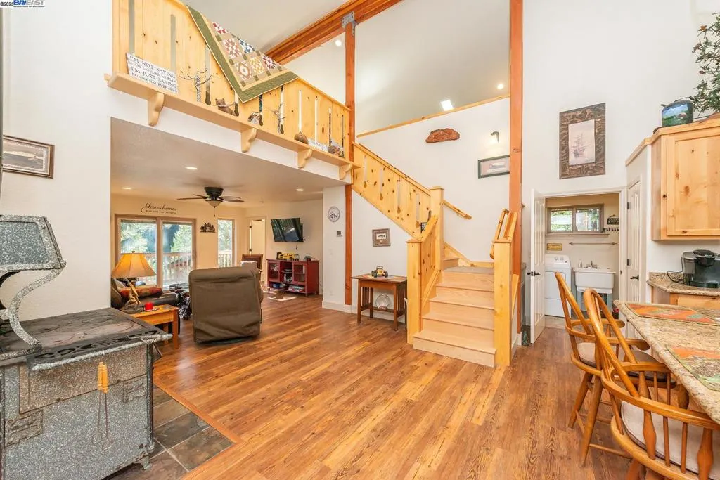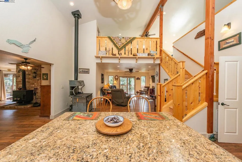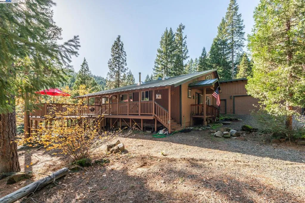 Creek Side Retreat, nestled in the tall trees with the sounds of the year round creek below the home that offers a sweet echo throughout the canyon. The custom built home that is approx 2,812 sf with 4 bedrooms & 3 full bathrooms, hand crafted pine stair way leading to the large loft/ game room with slider to deck to gaze at the amazing views of the Trinity Alps and across the canyon. Kitchen features custom granite slab counter tops, custom cabinets, vaulted ceilings, walk in pantry & leads to the laundry room. The living room has slider that leads to the wrap around deck, the den also has slider that leads the side deck. The floor plan offers so many options for variations of use for rooms. The garage is extra large consisting on 1,080 sf , with automatic door, sink, work bench & concrete flooring. A side yard that has a chicken coop or can be a dog run. Relaxing or entertaining on the large back deck listening to the sounds of the creek is how every day should end. Come and see this charmer!
