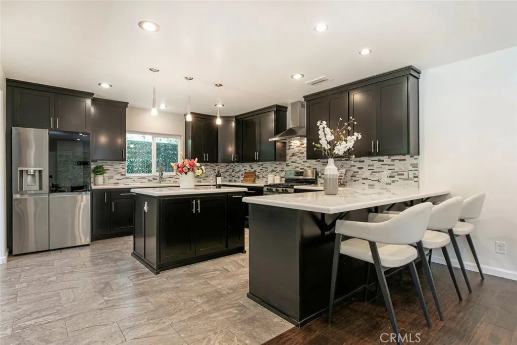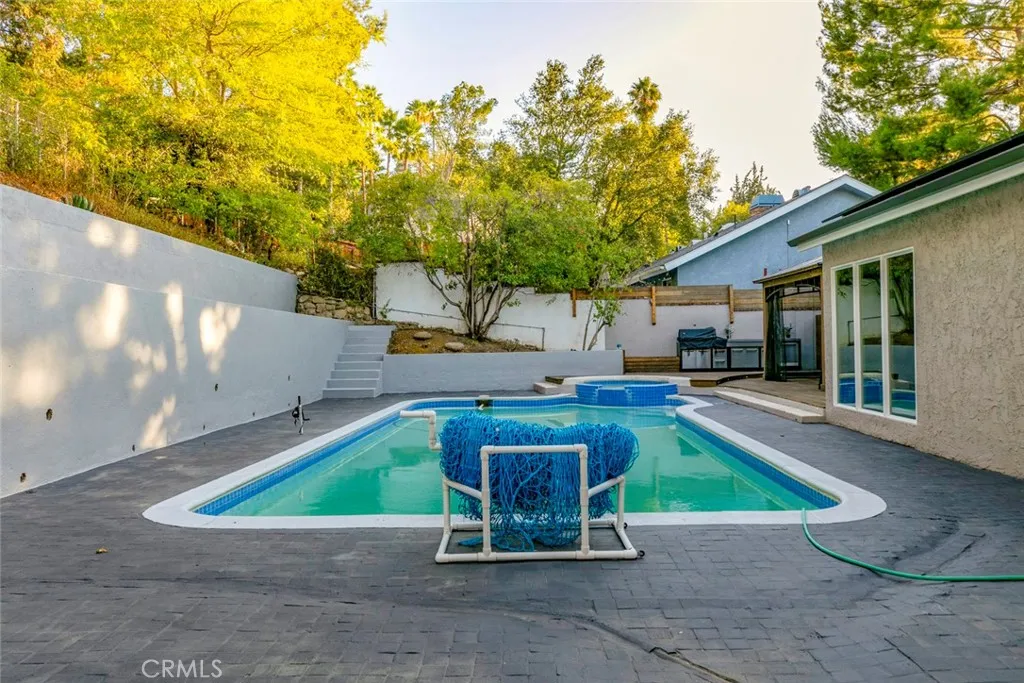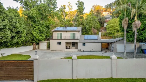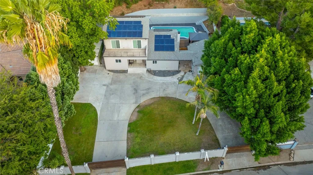 Welcome to this stunning four-bedroom, four-bathroom home, offering a perfect blend of elegance, comfort, and functionality. Step inside to a grand living room with soaring cathedral ceilings and a cozy fireplace, creating the ideal setting for both relaxing and entertaining. The inviting kitchen features a charming breakfast nook, while multiple living and dining areas flow seamlessly for everyday comfort. Upstairs, one of the bedrooms opens onto a private balcony overlooking the street, providing a perfect spot to unwind. Enjoy California living at its finest in the backyard retreat, complete with a sparkling pool, spacious patio, and a beautiful wooden deck - perfect for hosting gatherings or simply enjoying the outdoors. Additional highlights include a circular driveway, gated entrance for privacy, and ample parking space. The property is also equipped with a fully paid-off solar system, offering eco-friendly living and reduced utility costs. This home combines thoughtful design with timeless appeal, making it a true standout.